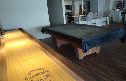 Shuffleboard, foosball and pool table in the main living area. Modern remodel with modern kitchen. Porch swing and hammock on the deck. Fireplace, two massive bedrooms, two large bathrooms. Dock for swimming, fishing, and boat tie-up. The view from the deck and dock is Duck Creek, the main lake, the mouth of Drowning Creek, and the mouth of Gray's Hollow (Dripping Springs). The full moon rise over Drowning Creek should never be missed. The crappie fishing in the spring, catfish all season, and white bass in the summer is very good. However, hybrid fishing in the fall is hands down the most fun.