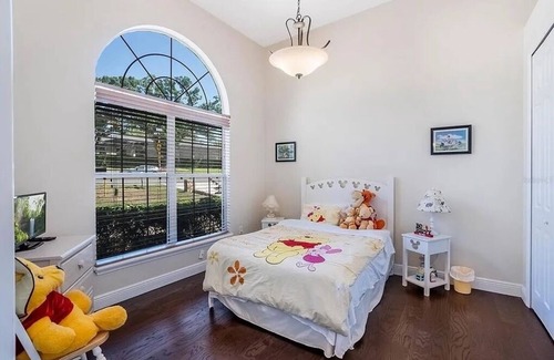 This Luxury 5 Bedroom 3.5 Bath Lake Home is available to Orlando area visitors. Be the first to stay in our newly themed vacation rental. Features disability stand up lift elevator to avoid stairs, RV hookup and large screened heated smart pool. Pool is heated with no additional charge. Bring you boats, RV, toys and fishing gear. New dock installed with direct canal access to the Clermont Chain Of Lakes. Bookings of 7 days or more can have a one hour visit from Princess Elsa for the children.