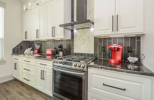- Fully stocked with kitchen utensils, pots and pans, cutlery, cutting boards, dishes, bowls,