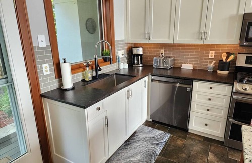 From the moment you arrive, we’ve made it easy for you to settle in. The home is equipped with a keypad entrance for seamless, contactless check-in. Tucked away on a private road shared with only a few neighbors, this home offers a perfect blend of seclusion and accessibility. The private driveway accommodates up to 4-5 vehicles, with additional parking at the base of the driveway, ensuring plenty of space for your group.