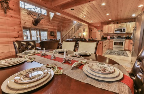 Unlike most rental spaces, we keep the cabin stocked with the things your family needs to have a magical get away and leave the day-to-day stresses behind you. You will always find a variety of complimentary K-Cups & creamers in the kitchen, real dinner and cookware, dozens of indoor and outdoor games, a single person kayak & a three person canoe by the lake, extra blankets & pillows in the bedrooms, toys for the little ones, books, and more. We even include a complimentary basket of firewood for your stay! Forgot your shampoo, lotion, or hair dryer? Relax - we provide those, too! Need to toss in some wash during your stay? Use our stainless steel washer & dryer!