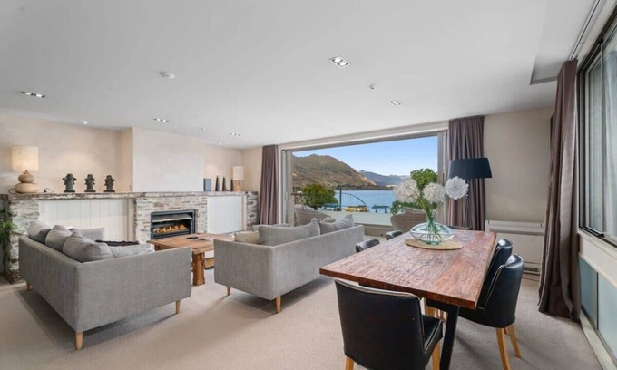 This Luxurious apartment with stunning Lakefront views is in the heat of Wanaka. Featuring two large bedrooms, a sauna, and two lounge areas this property is primed to make your stay in Wanaka truly special. You will be spoilt for choice when it comes to activities, restaurants, cafes, wine bars, tour pick-ups and public transport.