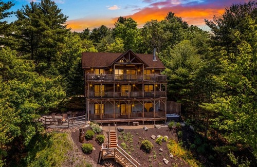 Escape to our luxury 5BR log cabin on Beltzville Lake, the perfect fall retreat for families and friends. Enjoy stunning sunsets from 3 levels of decks, soak in the private hot tub, or gather by the outdoor firepit on crisp autumn nights. Inside, cozy up by the fireplace, host game nights in the foosball room, or share meals at the handcrafted dining table. With hiking, fishing, and breathtaking foliage nearby, this spacious cabin is your ultimate Pocono autumn escape.