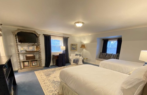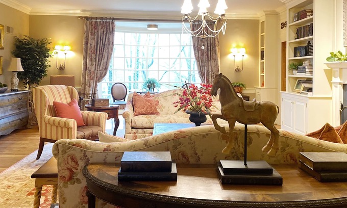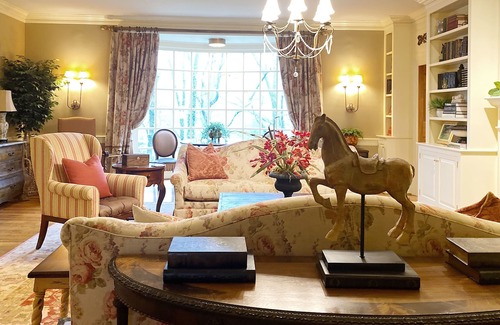 True Kentucky luxury experience. Central to everything, with lush garden and plenty of space for the family to be comfortable during your stay. This manor is perfect for retreats, couples getaways, and families. Relax in the winter next to one of 4 fireplaces, or watch kids play on private playground and stream in backyard.