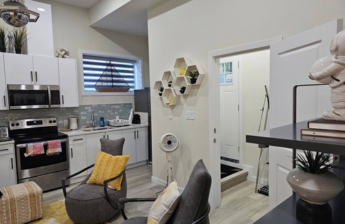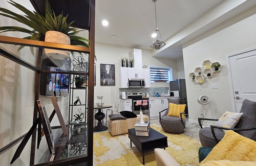 This isnot your typical BASEMENT suite.Step into aspacious, artfully designed 1-bedroom retreatthat boastssoaring 11-foot ceilingsand a curated blend ofluxury, futuristic aesthetics, and pure comfort.Every detail has been thoughtfully selected to create a space where you can truly unwind, recharge, and feel inspired.