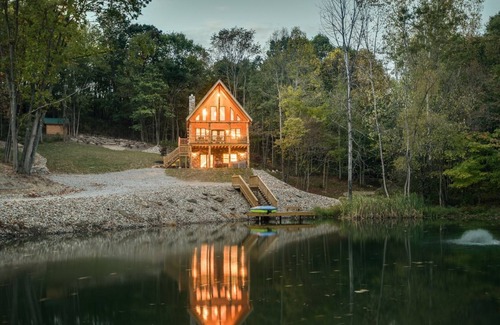 Luxury Log Cabin on Private Stocked Pond | Cabin in West Lafayette