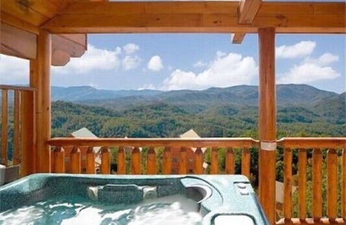 You will love the amazing view that surrounds ' A Glimpse of Heaven '. Whether you are on the upper deck in the private bubbling hot tub overlooking the mountains or relaxing in the porch swing on the lower deck, the 40+ mile, wide open view is guaranteed to take your breath away.