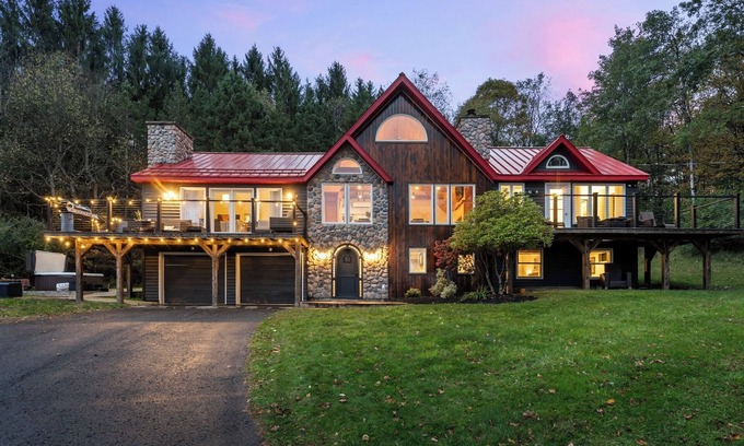 Luxury Log Chalet w/Hot Tub, Games Room & Hill Views! is located in Ellicottville. Luxury Log Chalet w/Hot Tub, Games Room & Hill Views! provides accommodation, featuring TV, Bedding/Linens, Wellness Facilities, among other amenities. This Ski Chalet features TV, Bedding/Linens, Wellness Facilities, to make your stay a comfortable one.