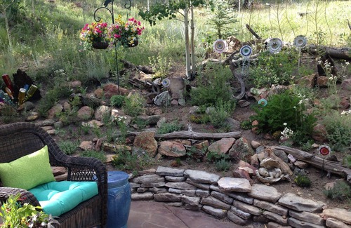 The grounds are beautifully landscaped with high altitude gardens and there are spots to read or meditate and enjoy the serenity of the woods. A ski chair swing invites you to have a seat and contemplate. The only thing you will hear is the sound of the leaves, the chatter of birds, and the whoosh of the wind. It is not unusual to see our local critters, as Puma Canyon is home to elk, deer, bobcats, wild turkey, coyotes, red tail hawks, owls, and golden eagles. A herd of big horn sheep lives a couple of miles away.