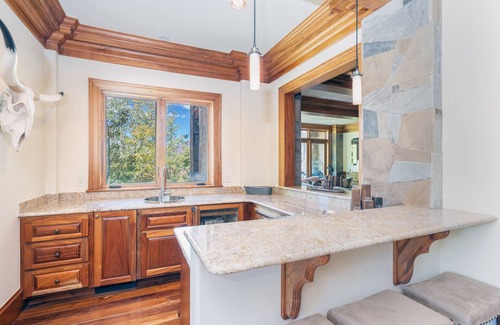 The home is single-level and spacious! The open concept living/dining/kitchen and a bar area are perfect for everyone to get together. A massive fireplace will be sure to warm you for après skiing or hiking. There is a separate seating area for a more intimate gathering just off the kitchen area with another fireplace and TV in case anyone has a different show they would like to watch. Sophisticated furnishings can be found throughout the home.