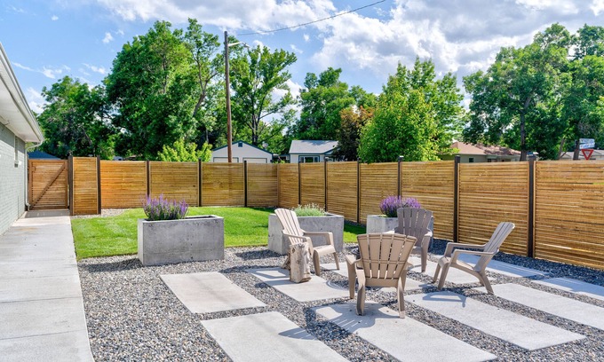 Welcome to our luxurious mid-century modern ranch home adjacent to Lake Rhoda in Wheat Ridge, Colorado! With 4 bedrooms and 2 bathrooms, our home can comfortably sleep 11 guests among its 9 beds. Nestled in Wheat Ridge, a western suburb of Denver, this private home is located on .33 acres on a corner lot. Our home is located just 5 miles away from the heart of Denver and attractions like Coors Field, the Denver Zoo, and Red Rocks. Keep reading for our favorite Denver restaurants & attractions!