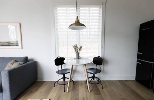 The 450 sq ft. Twilight Point cabin is a modern oasis, complete with a bedroom with a king bed and room darkening blinds, full bathroom with shower, and an open concept living room, dining room and a fully stocked kitchen. Large windows in the living room and bedroom look out onto a private deck, hot tub, fire pit, and of course, the tranquil woods and trails of the Wilder property. There is an on-site, free parking area that leads to all the wilder cabins. Noting that the parking area is not directly in front of your cabin, but a short walk. 4WD/AWD is recommended.