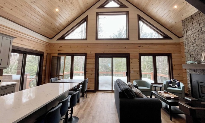 Best-rates for the Bracebridge cottage starts from $411 per night with includes Laundry, Air Conditioner, TV, Kitchen, Barbecue/Outdoor Cooking, Internet, Balcony/Terrace, Security/Safety, Bedding/Linens, Wellness Facilities, Entertainment, Child Friendly, Parking, Sports/Activities, Fireplace/Heating StayAndPlay offers fully equipped golf villas, golf hotels, golf resorts, luxury golf cabins, and exclusive golf retreats, making it easier than ever to find your perfect golf escape — ideal for families, peaceful getaways, or pet-friendly retreats with the whole crew.