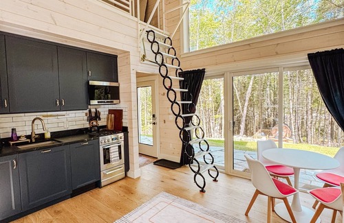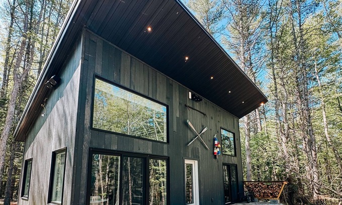 Welcome to your peaceful retreat in the woods where simplicity meets comfort. This cabin is all about embracing nature without sacrificing comfort— wireless sound system indoors and out, fast Wi-Fi, and a hidden TV. Serene views through floor-to-ceiling windows, relax in the cedar-barrel hot tub under the stars, unwind in the wood-fire sauna with a window into the woods . The fully stocked kitchen is ready for anything, from cooking a feast to enjoying a quiet morning coffee.