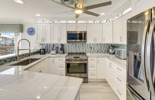 Discover your ideal coastal escape at this beautiful 4-bedroom, 3-bath Jensen Beach vacation rental. This 'Dockside' oasis offers stunning views from the balcony, perfect for viewing Florida's glorious sunsets! Soak up the sun on the private waterfront dock, take advantage of the high-quality custom lighting for indoor and outdoor activities, or dip in the sparkling community pools and relaxing hot tubs.