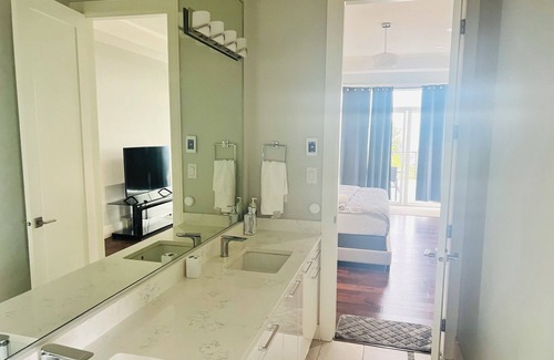 Enjoy ocean view living in a spacious house. Roof deck is exclusive. Features include spacious patios. There are two kitchens attached. Main acrylic kitchen and attached spice kitchen. It is a level entry house with wheelchair accessible entry. Includes wifi, two smart TVs. Office has a mac apple computer. There is a dining table alongside ocean-view. Kitchen has a central island. There is kitchen aid fridge, two mile dishwasher, electric stove in the main kitchen. And a gas stove oven in spice kitchen. There is a microwave oven, coffee maker, sandwich maker, and electric kettle. There are wine glasses, cutlery for more than 10 people. Large motorized blinds. Sunrise and sunset views from the decks 180 degree ocean-view. Georgia strait is visible from the view. There are a few parks on walking distance. Liquor store and pipers pub 3 minutes away. Around 20 minutes from departure bay terminal. Islands biggest mall woodgrove mall is 10 minutes away. Neck point park is 5 minutes away. Departure bay beach 10 minute drive. The master bedroom has a comfy king size bed. With double sink washroom, bathtub and a walk in closet. Three are three extra bedrooms on second floor. 2 bedrooms have a shared washroom. Third bedroom has on suite washroom and walk in closet. As per the city by law I will be on the third floor at the bottom. With a separate entry. House is ideal for events and parties. Private and peaceful Neighbourhood. Hope you enjoy your stay. Thanks