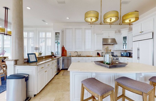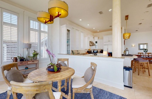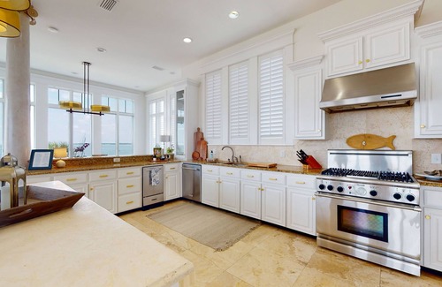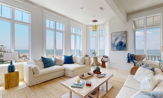 Welcome to The Golden Fish - A 3,000 square foot Luxury Oceanfront Condo with panoramic views, four outdoor porches, beachfront deck, firepit, elevator and so much more! The living space offers over 1800 square feet for family and friends to enjoy, featuring a dining room, living room, kitchen, breakfast room, an outdoor dining porch with a propane grill, and a porch facing the ocean for relaxation. Two Master Bedrooms come with king-sized beds and private bathrooms. Additional sleeping arrangements include a deluxe daybed with a trundle in the bedroom/office area, a queen-sized cabinet Murphy bed in the main entry, and two twin-sized Frontgate raised inflatable beds for flexible placement. Convenience is key with a refrigerator/freezer in the entryway (eliminating the need to carry drinks up and down), a full bathroom in the entryway (no bathroom on the beach), an outdoor shower by the deck gate, and a beach deck for high tide times. Each bedroom features a smart TV, and the condo is outfitted with premium linens, a variety of kitchen appliances, and elegant furnishings. Located less than a half mile from the village shops & restaurants, lighthouse, museums and parks, you will not find a better location!
