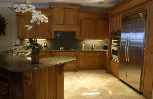 -Kitchen is equipped with state of the art stainless appliances, granite countertops, and wine refrigerator.