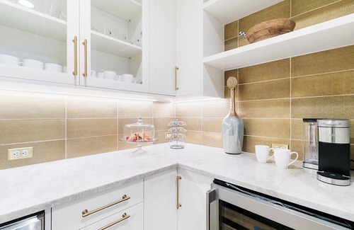 Additional delights on this floor include a separate butler's pantry with a tall wine cooler and a summer kitchen with a large built-in grill, sink, and patio seating overlooking the views.