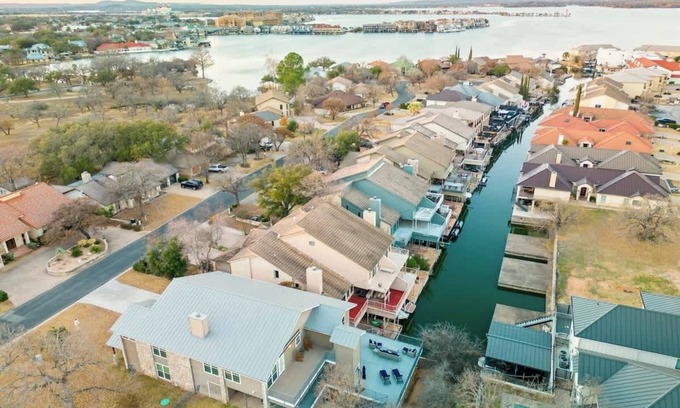 Welcome to Horseshoe Bay's newest luxury rental destination! Experience life on Lake LBJ at this stunning 4000 sq ft home that sits at the end of a canal with a boat slip and will comfortably sleep up to fourteen guests. The ample outdoor space features generous seating with three deck areas, a brand new hot tub, plenty of room for the kids to play outside, and a fire pit for those chilly nights on the lake.