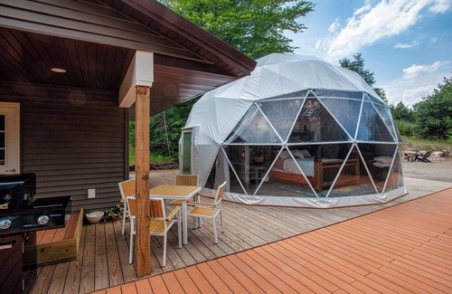 Enjoy an intimate experience with nature and all the amenities of a luxury resort yet only minutes away from Traverse City's finest restaurants, beaches, wineries, shopping, and golf. Only 3 miles from the Great Lakes Equestrian Show and 1.5 miles from Turtle Creek Casino. 780 sq. ft. of living space with majestic views. The dome is spacious and 16' tall. Enjoy a private bathroom complete with a bathtub/shower, vanity, and toilet, kitchen with a refrigerator, microwave, and hot plate. AC and Heat.