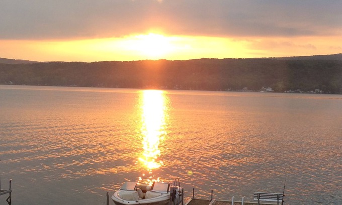 Enjoy Honeoye Lake in this recently remodeled year-round home with nearly 1600 sf of living space. This three bedroom, 1 1/2 bath home has many oversized windows which offer postcard views of the surrounding Bristol Hills. The level yard and large deck open to over 50 ft of lakefront. Take advantage of the private dock for sunbathing or fishing. There is a grassy area for yard games, a fire pit for night-time marshmallow roasting, a front and back deck for outdoor entertaining and much more. This property truly has it all.