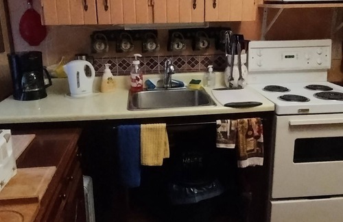 Just outside your private suite is the hall to the shared deck and fire pit area and the fully equipped kitchen that has everything you need to make a full meal or snack all pots and pans dishes, glasses, wineglass, cutlery, crock pot, kettle, coffee machine, blender and more is supplied.