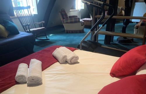 The last dormitory has a double bed (140cm) and a single bed, and can offer a modular sleeping area appreciated by the tribes, as well as a treadmill for the more athletic.