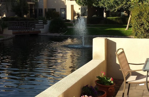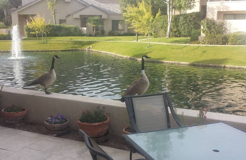 This townhome has two bedroom and two master bathrooms with large office. Gainey Ranch Clubhouse access. If you need to have an office at home this unit allows you to have that area where you can get away. Remodeled kitchen and bathrooms make it very comfortable. Two-car garage and two decks overlooking small lake with two fountains. Golf club is five minutes away. Few miles away to the baseball park, Old Scottsdale and Fashion Mall. Winter rentals,1 months minimum in winter. 1/1 to /30