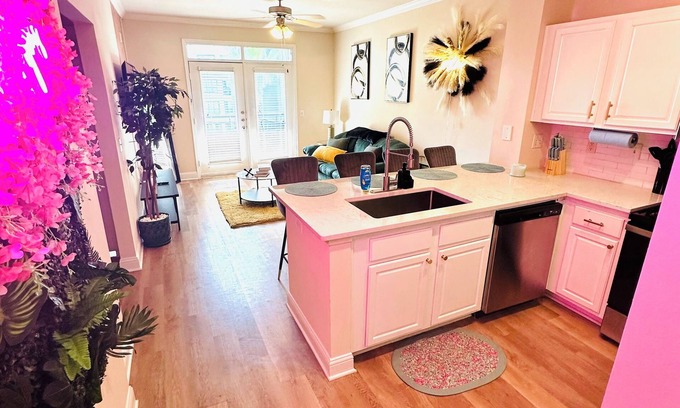 This luxurious one-bedroom, one-bathroom apartment comfortably sleeps up to four guests. Located in the heart of Houston Texas. This elegant space combines modern comforts with sophisticated style.