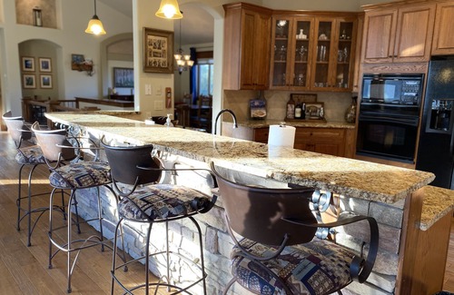 The home features a 2 car attached garage, main level laundry, fully appointed kitchen, dining room, great room, outdoor deck and master suite. In the basement there is an additional 3 king bedrooms and a smaller bedroom with one twin bed. With 4,300 square feet, the house comfortably sleeps 2 families (there is an 6 guest max).