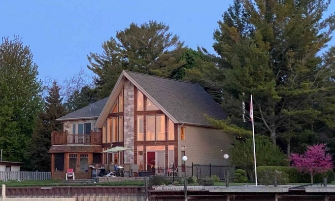 The year-round cottage is truly gorgeous. It is a two-story open concept with floor-to-ceiling windows allowing an abundance of natural light. It has a fully equipped kitchen, sleeps 7 guests in beds, a large master bedroom with a balcony, a luxurious ensuite bathroom with a jetted tub, and an outside patio deck with a fire pit and BBQ. And for cool nights a gas fireplace in the family room. There are four kayaks and (occasionally one canoe) available for your use.