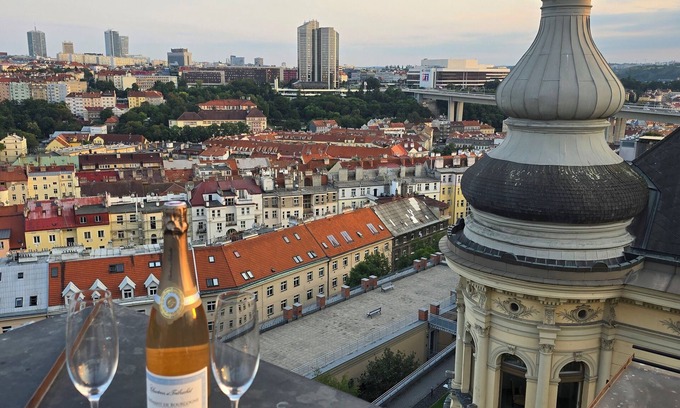 Luxury rooftop apartment with fantastic views! Your home away from home in the heart of Prague. This peaceful 3-bedroom apartment offers an excellent retreat for guests. With 1 queen bed and 2 full beds, 3 bathrooms featuring a jetted bathtub, this space is perfect for families or groups. Enjoy the convenience of amenities like roof top terrace with jacuzzi, sauna, BBQ, TV projector, floor heating, AC, fitness room, pet shower with hair dryer, WiFi and many others like in no other place!