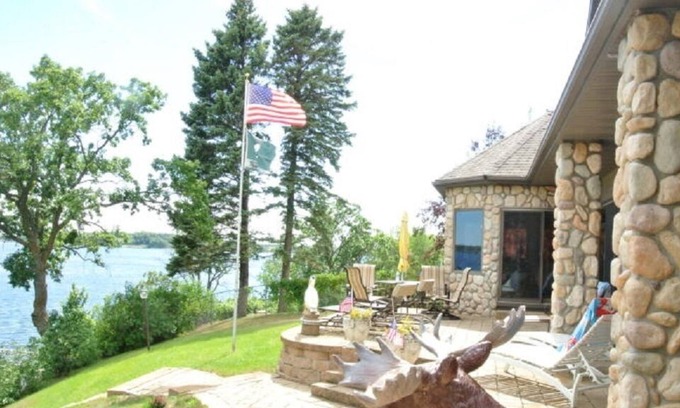 A vacation dream on Pelican Lake! This property will book fast so, please do not wait to book your spot next summer! Spectacular views from this year-round lake home on Big Pelican. Great swimming with 100 feet of lakeshore and the complete dock system. Great swimming with 100 feet of lakeshore and the complete dock system is included. Pontoon and water toys are available for rent. The space This 5 bedroom/3 bath home has a lakeside master bedroom and sunroom, vaulted ceilings, split rock stone fireplace, and concrete steps to a patio. Private and gated drive with an attached 2 stall garage and a 2 stall detached garage. Spectacular views from this year-round lake home on Big Pelican. The lakeside patio provides plenty of space to relax or entertain. House is fully stocked for your summer vacation, utensils and linens provided. If you need extra cleaning services during your stay - just let us know. Bonfire pit for a perfect ending to a day on the water. Just a short drive by boat to Zorbaz.