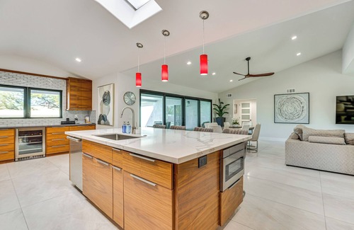 A sunny Arizona escape awaits at this beautiful 4-bedroom, 3-bath Scottsdale vacation rental! With a full gourmet kitchen, upscale furnishings, and a backyard oasis with a private pool, this home provides the perfect spot for your next group getaway. When you’re not lounging poolside, fire up the gas grill for a cookout on the patio or cozy up inside for a movie night. When you’re ready to step out, catch a spring training game at Salt River Fields or enjoy shopping at Fashion Square.