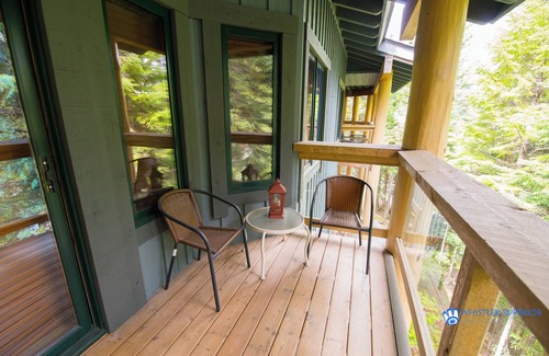 Taluswood #9 is a ground floor, one level property and its décor has a distinct Whistler Ski Cabin feel with post and beam construction and wooden accents throughout. This stylish vacation rental is very well outfitted and features most of the conveniences of home including a fully equipped kitchen, washer/dryer, wood burning fireplace, flatscreen television, radiant heated flooring and a wraparound balcony with patio furniture and a BBQ.The master bedroom houses a Queen-sized bed and has an ensuite bathroom with jetted soaker tub. The second bedroom has twin beds. Guests will also enjoy the private garage perfect for securely storing bikes and ski gear after a long day spent in the Whistler wilderness.