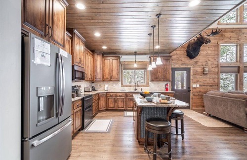 Welcome to Henry's Lake Hideaway, a stunning retreat nestled in the heart of Island Park, Idaho. This spacious 5-bedroom home offers a perfect blend of comfort and adventure, accommodating up to 13 guests, making it ideal for family gatherings or group getaways. Surrounded by breathtaking forest views, this property provides a serene escape from the hustle and bustle of everyday life.