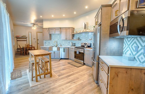 Avanti Acres is a new build property completed in March of 22. The property boasts 10ft ceilings throughout it's spacious 1500 sqft. This cabin is beautifully upgraded and provides the perfect at home feel. With a cozy living area and fully stocked kitchen, prepare to have the ultimate Arizona vacation. Enjoy elbow room on 4 acres that back to National Forrest, a spacious patio to lounge on, or catch up on sleep aboard one of the King size beds. Coupled with the wood shutters and commercial graded vinyl flooring, you're sure to unwind and take it easy. Less then 12 miles away from downtown, this is a perfect destination if you want to visit Show Low for vacation, while also recharging in a private sanctuary. You'll have plenty of space to bring your all terrain vehicles of all sizes, with the exciting Maverick Trail only minutes away. High speed Wi-Fi is a must and Avanti Acres delivers! Each of the matching master bedrooms is equipped with a 50 Inch smart TV, walk in closet, and en suite bathroom with custom walk in showers. The common area has an office space for emails and web surfing for those that can't leave their laptop at home. The living room has two full size recliners with USB ports for device charging as well as a couch that has the ability to be pulled out for additional sleeping space. The 70 Inch smart TV is great for enjoying your favorite show, sports, or playing music to set the mood. There is plenty of seating available in the dining area and kitchen for coffee in the morning and your favorite beverage in the evening. The fully furnished kitchen allows the cook in you to craft up any meal you see fit. Finally, kick off your shoes and relax on the outdoor patio space as you observe the four acres the property sits on as well as the expansive 360 degree views of the entire valley below you. As previously mentioned, Avanti Acres backs to the National Forrest and often receives visitors in the form of elk, rabbits, and javelina to name a few!
