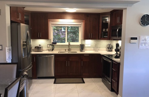 Your brand new luxury private suite was completely renovated in 2017 with top of the line appliances and furnishings.Complete with 3 bedrooms, 1 large bathroom ,a private fully equipped kitchen and a large bright living room with a view and a private entrance.