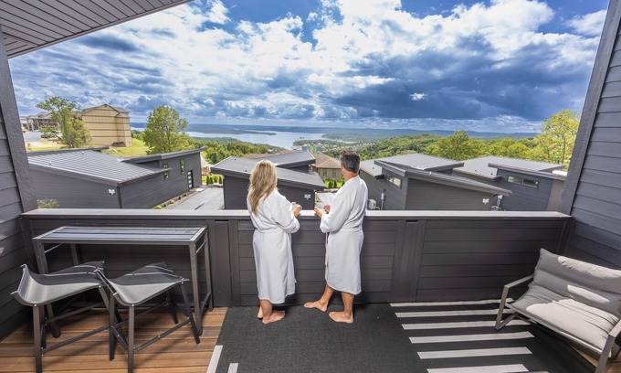 Sitting 20 feet above the ground, this luxurious tree house seamlessly unites Table Rock Lake's beauty with the airy interior through expansive floor-to-ceiling windows. Step onto your private, furnished balcony to relish the invigorating mountain breeze and the boundless horizon where Table Rock Lake meets the sky. Whether unwinding by the fire or immersing in your favorite shows on the 55" 4K TV with cable and full streaming options, opulence envelops you.