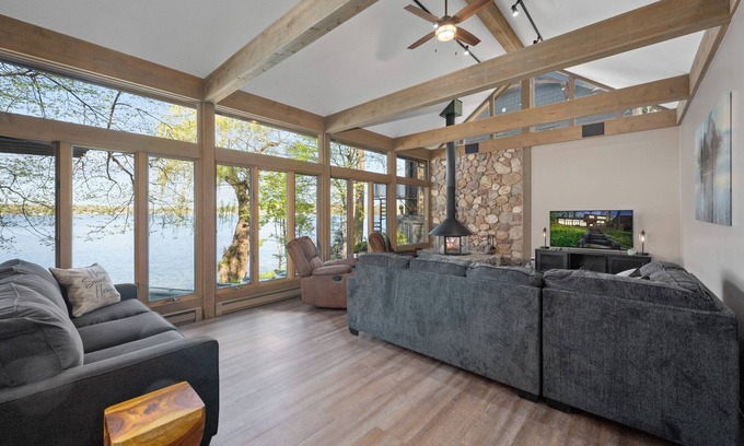 Welcome to our vacation home rental located on the 1st basin of picturesque Lake James in northern Indiana. Our secluded home boasts over 3400 square feet of living space, with all the modern amenities you need for a comfortable stay. Stay connected with our Wi-Fi and enjoy your favorite shows on large-screen TVs. With six bedrooms and two pull out couchesthat accommodate 16 peopleand three full bathrooms, there is plenty of space for families and groups to spread out and relax. Our property also features a spacious living room, fully equipped kitchen, and porch for you to soak up the serene views of the lake. We offer three parking spots for your convenience, ensuring your stay is as stress-free as possible.