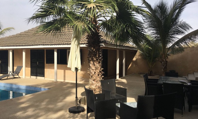 Superb villa 400 m from the sea, modernly equipped, with a large swimming pool, fitness room, in a quiet and safe fishing village ideal for recharging your batteries (Nianing-Mbour)