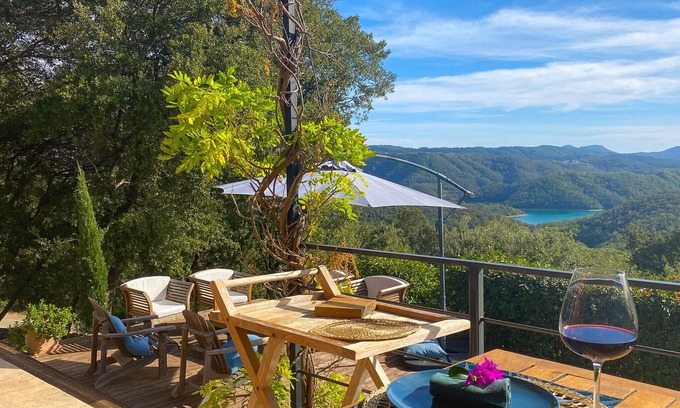 Welcome to the Canton of Fayence, a countryside ambiance close to the sea. For a peaceful vacation, we offer a magnificent family villa with Provencal charm, nestled on the heights of Montauroux in a quiet, wooded estate with a panoramic view of Lake Saint-Cassien. It provides a serene holiday experience in complete privacy while being close to major cities.