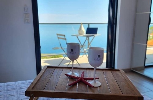 The exterior: A patio of 40M2 without opposite protected from the wind. In the patio, a plancha space and a spa area for 4 people (3 long seats with sea view and a seat). Su the side of the house, a large terrace and swimming pool on the seafront. Absolutely amazing view from all the rooms of the villa and pool.