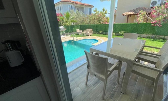 In the nearby areas, there are many beautiful natural wonders. Different coves and beaches can be easily reached in 20-30 minutes, both by sea and by land. Daily boat trips and tours are a 5-minute walk away. Car rental offices are within 5 minutes' walking distance, depending on the location of the villa. Our villa is a twin villa. The two villas are side by side but have separate entrances. It has a large, landscaped garden, private pool and barbecue. No disturbing sounds are heard from the environment. The villa has 3 bedrooms, each bed consists of double beds. Extendable sofas are also available. Our villa is delivered to you in a clean and hygienic manner. Covid-19 precautions are taken and given importance. As long as you stay in the villa, the cleaning will be yours. There is an area for children at the pool. The building is newly built, the furniture is new. A luxurious and comfortable holiday awaits you.