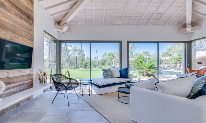 Best-rates for the Tourrettes villa starts from $1,070 per night with includes Accessibility, Fireplace/Heating, Internet, Parking, Pool, Designated Smoking Area, Private Pool, Balcony/Terrace, Laundry, Sports/Activities, Entertainment, Barbecue/Outdoor Cooking, Air Conditioner, Pet Friendly, TV, Bedding/Linens, Wellness Facilities, Child Friendly, Kitchen StayAndPlay offers fully equipped golf villas, golf hotels, golf resorts, luxury golf cabins, and exclusive golf retreats, making it easier than ever to find your perfect golf escape — ideal for families, peaceful getaways, or pet-friendly retreats with the whole crew.