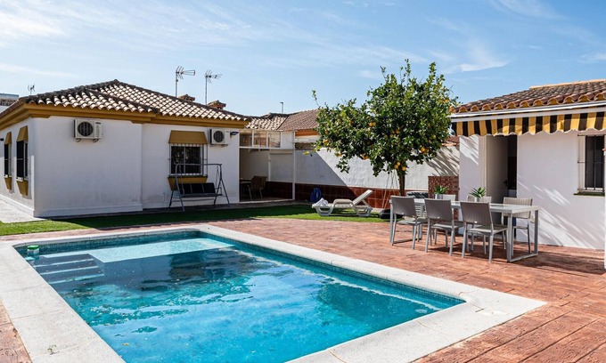 Discover the perfect getaway on the coast of Cádiz! This exquisite independent villa in Chiclana de la Frontera combines luxury, comfort, and an exceptional location to offer you an unforgettable experience with your family or friends.
