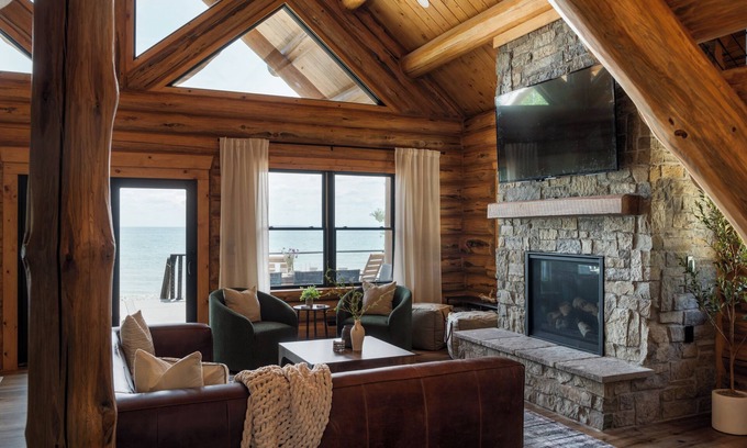 Luxury Waterfront Log Cabin on Lake Michigan with Barrel Sauna & Kayaks | Cabin in Ellsworth