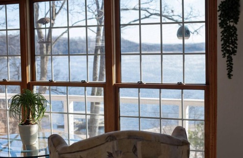 Waterfront Resort Home with amazing views in every room! Private beach in a beautiful cove with a short level open path to the Lake.15 Minutes from downtown Rogers!