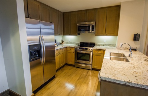 Enjoy the fully equipped kitchen which features Kitchen Aid appliances, a full size refrigerator and freezer, dishwasher, stove, microwave, and coffee maker. The condo is great for entertaining with dinnerware to accommodate up to 12 people.